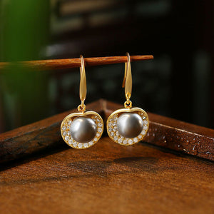 French Court Style Pearl Earrings with Full Zirconium Diamond