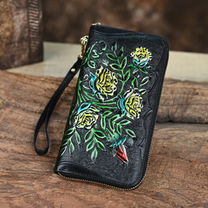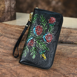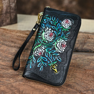 Retro Leather Wallet, Large Capacity, Multi-card, Embossed, Handmade, Colorable Zipper Bag