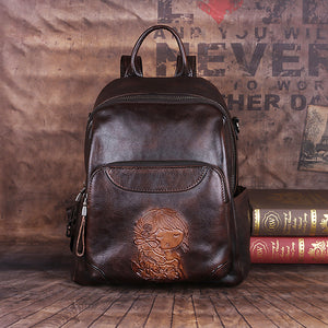 First Layer Cowhide Vegetable Tanned Leather Handmade Large-Capacity Backpack Shoulder Bag