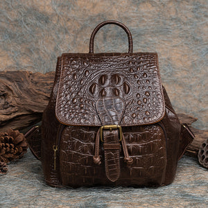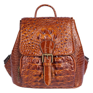 Top Layer Cowhide Crocodile Pattern Embossed Leather Backpack