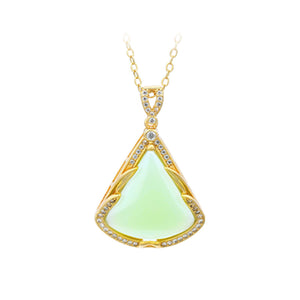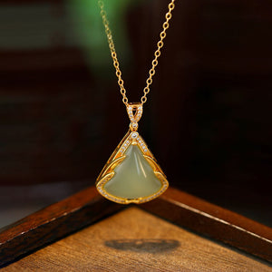 Home Necklaces Imitation Hetian Jade Small Skirt Necklace with Gold Plated Inlay Fan Pendant