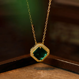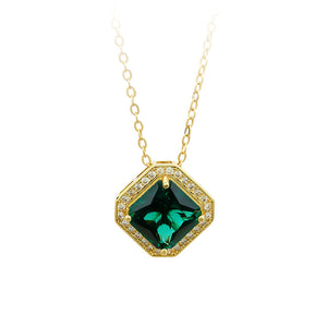 Fashion Simple Grandmother Green Chen Stone Versa Color Gold Plated Niche Necklace