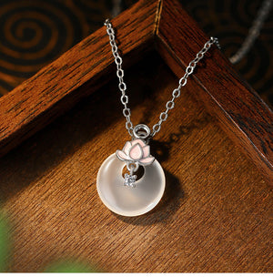 Ayeryuan Lotus White Chalcedony Safe Buckle Women's Clavicle Necklace