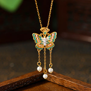 El Yuan Youmeng Filigold Color Butterfly Necklace, Simple and Fashionable