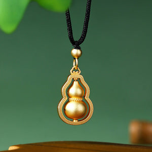 Gold Plated Fortune Double Gourd Pendant Necklace for Men and Women