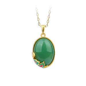 Red Riding Book Necklace with Real Gold Plating and Imitation Emerald, Women's Antique Jewelry