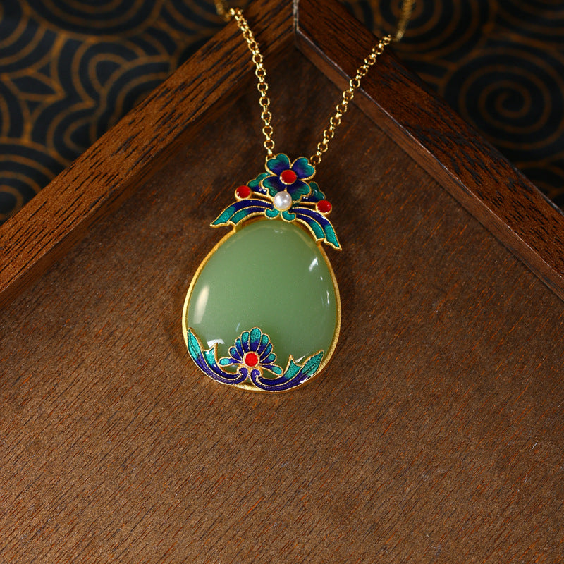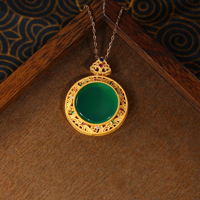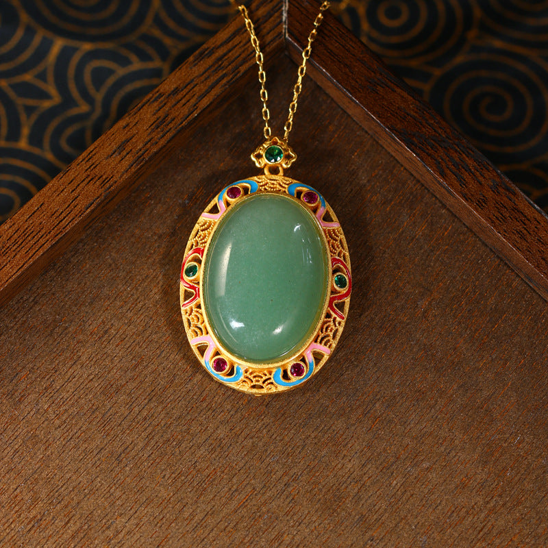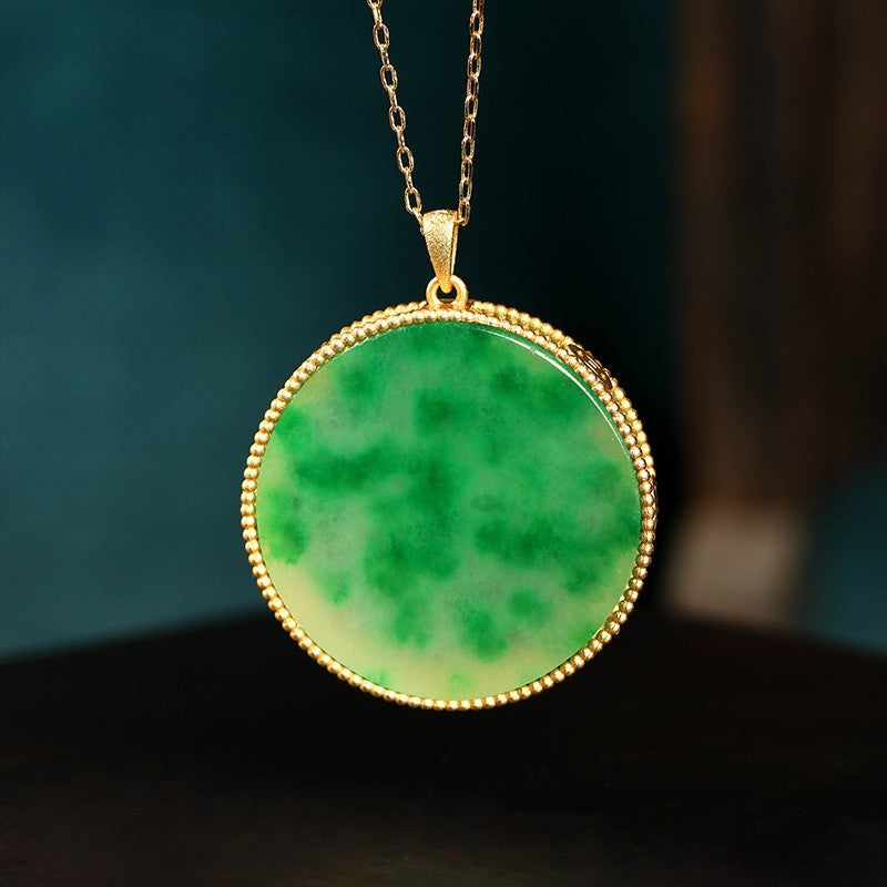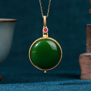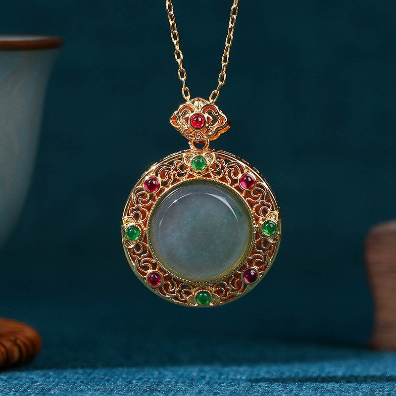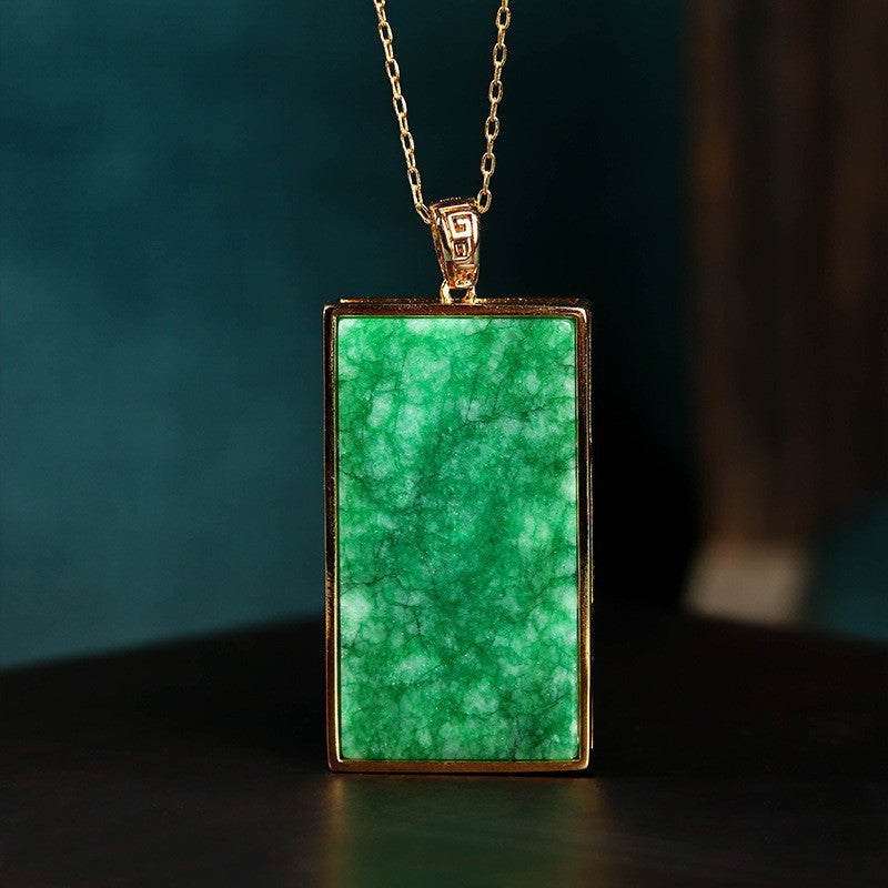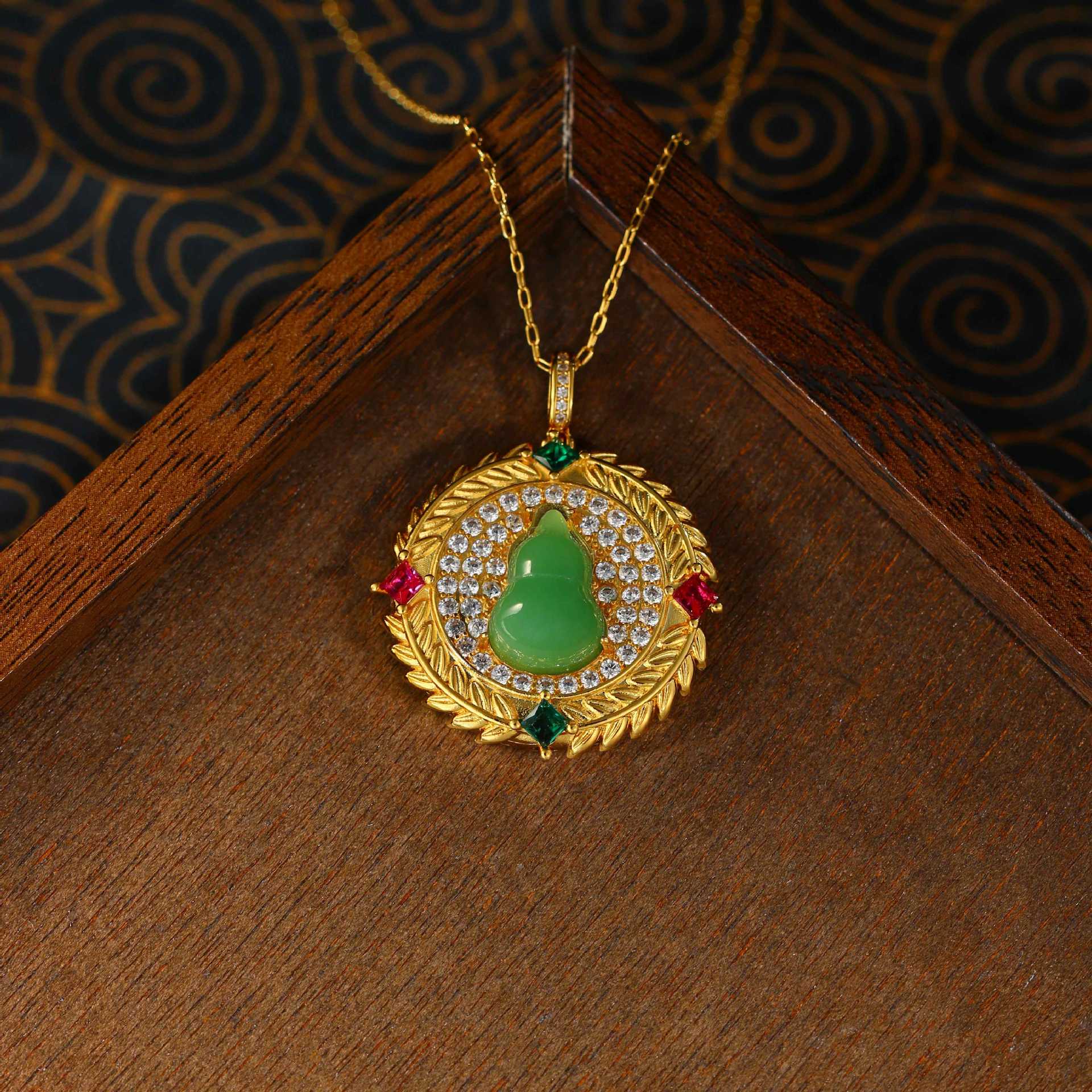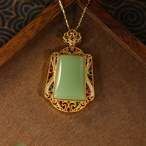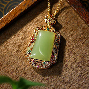 Real Gold Plated, Micro-inlaid Colored Diamond Imitation Hetian Jade Pendant Necklace for Men and Women