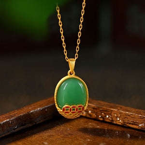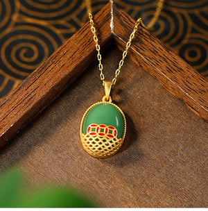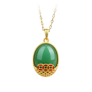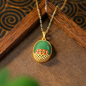 Enamel Color Wealth Necklace with Imitation Hetian Jade for Women