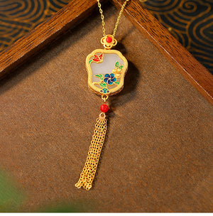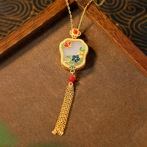 Flower Blossom Fan-shaped Cold Enamel Tassel Necklace