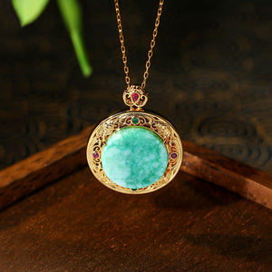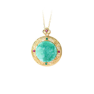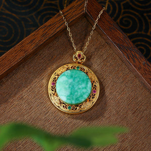 Gold-plated Inlaid Dry Green Imitation Jade Pendant Necklace