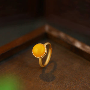 Ellison National Tide Gold-plated Imitation Beeswax Opening Women's Lucky Cloud Pattern Hollow Ring