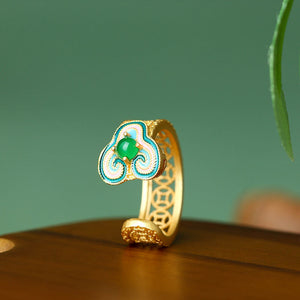 Retro Gold Plated Enamel Hollow Xiangyun Imitation Hetian Jade Ring for Cheongsam Hanfu