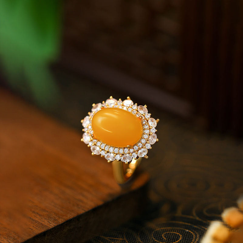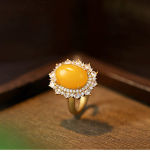 Retro Court Style Princess Imitation Beeswax Amber Adjustable Ring