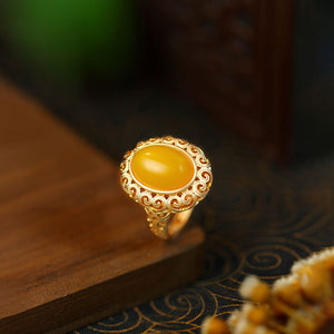 Ancient Gold-plated Beeswax Xiangyun Ruyi Filigold Hollow Egg Face Ring