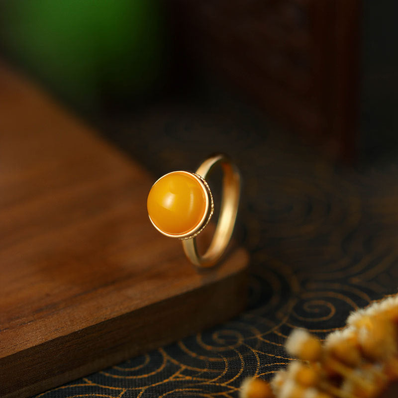 Ellison National Tide Gold-plated Imitation Beeswax Opening Women's Lucky Cloud Pattern Hollow Ring