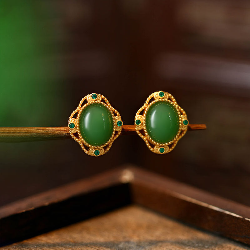925 Silver Needle Imitation Jasper Earrings, Simple Round Retro for Women