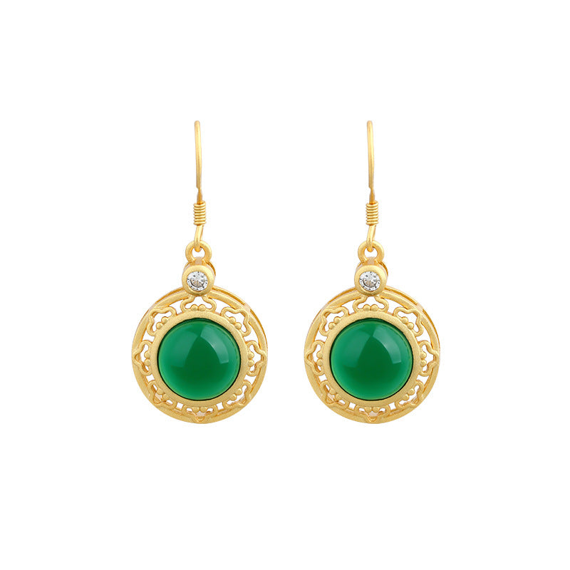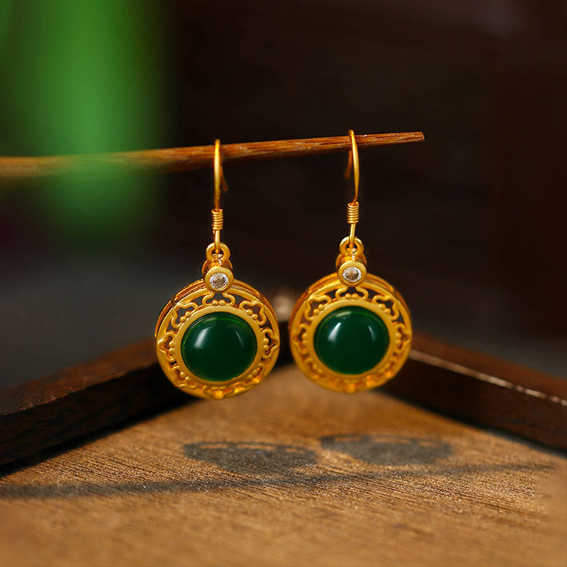 925 Silver Needle Gold Plated, Inlaid Imitation Hetian Jade Earrings for Women
