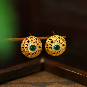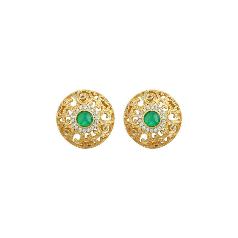 Green Chalcedony Earrings with Gold Craft, S925 Silver Needle Inlay, Light Luxury and All-match