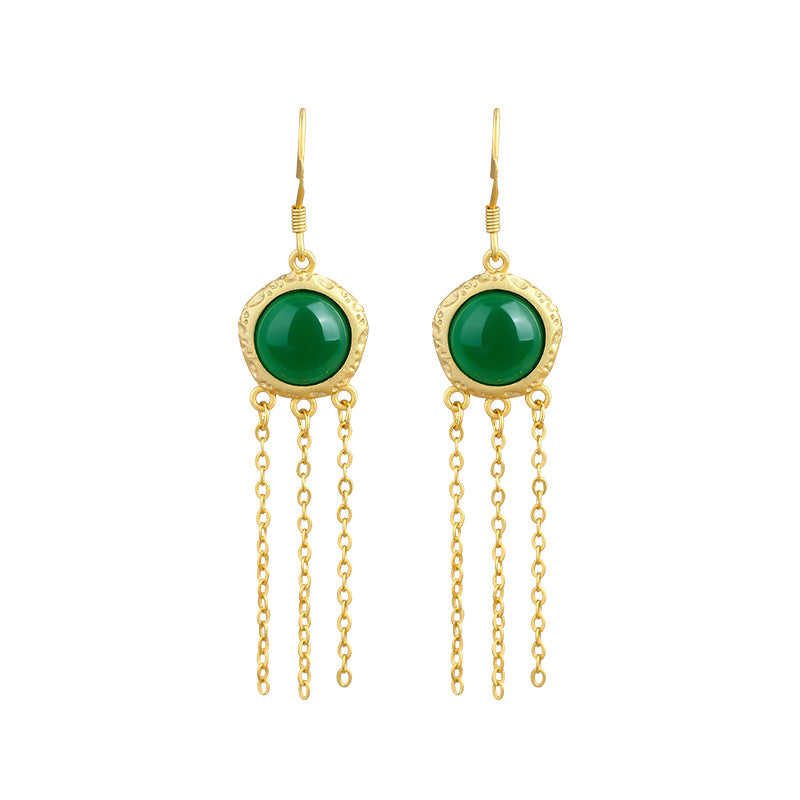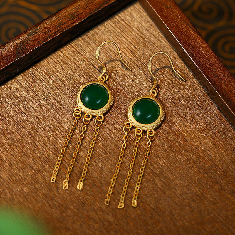 Artificial Imitation Hetian Jade Ping An Buckle Tassel Earrings