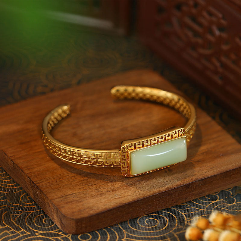 Home Gold-plated Inlay Imitation Hetian Jade Filigree Bracelet - National Tide Ancient Style