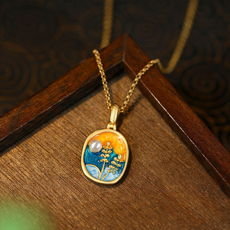 Ancient Oil Painting Style French Pearl Clavicle Chain for Women