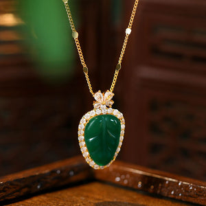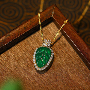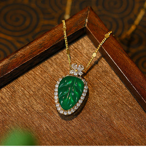 Plating Gold Inlaid Ice Chalcedony Golden Branches Jade Leaf Imitation Jade Pendant Necklace for Men and Women
