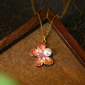 Cold Enamel Craft Butterfly Pearl Collarbone Necklace