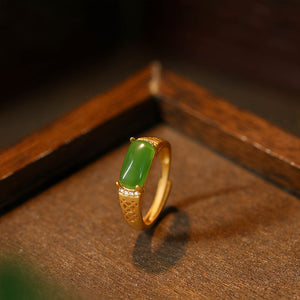 Gold Plated Imitation Hetian Jasper Hollow Saddle Ring for Women - Fashion Trendy