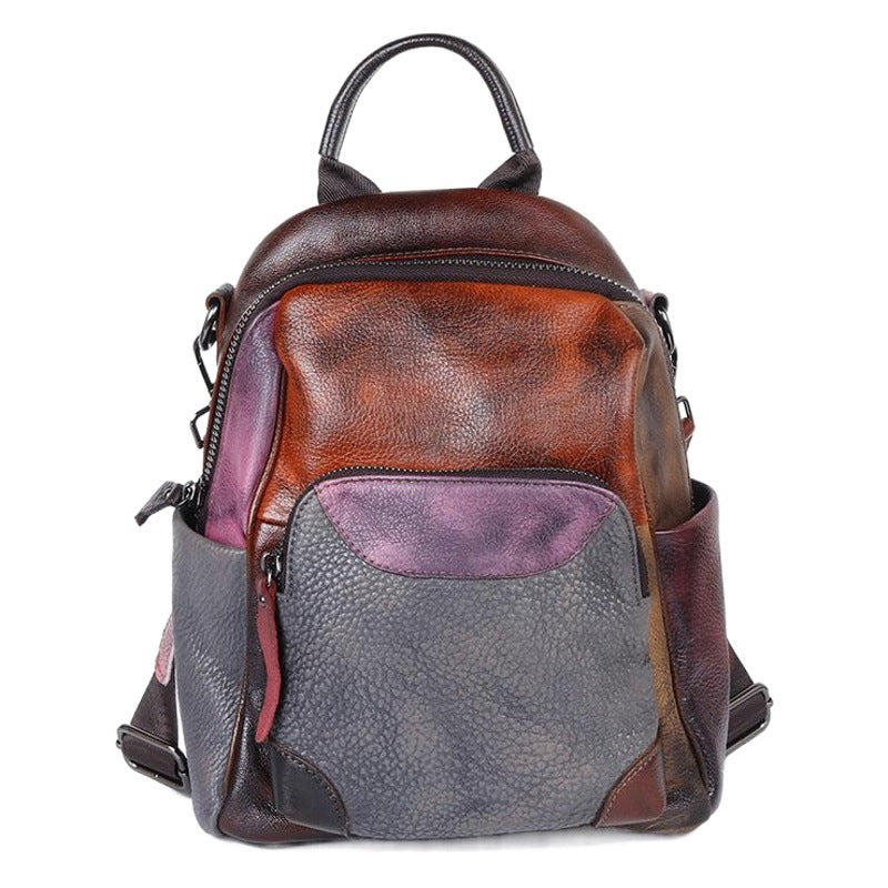 Cowhide Color Blocking Handmade Outdoor Genuine Leather Backpack