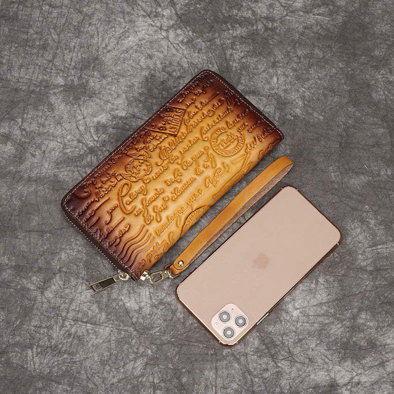 Ladies Long Style Leather Bifold Wallet in Red Brown, Large Capacity