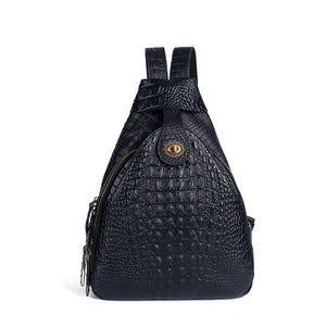 Live Source Top Layer Cowhide Multi-purpose Backpack with Vintage Embossed Crocodile Pattern, Hand-polished