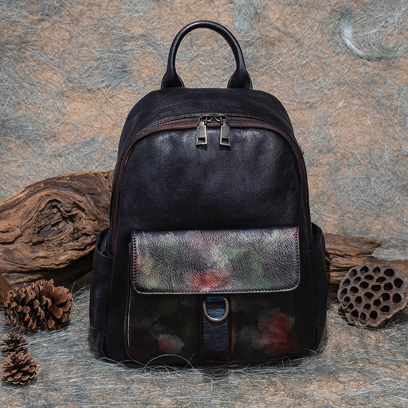 First Layer Cowhide Vegetable Tanned Leather Backpack for Women - Multi-Purpose, Retro Brushed Design