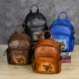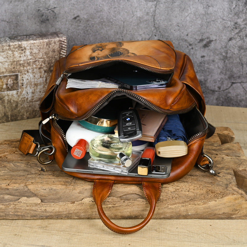 Vintage Large Capacity Vegetable Tanned Leather Women's Backpack, Handmade Head Layer Cowhide