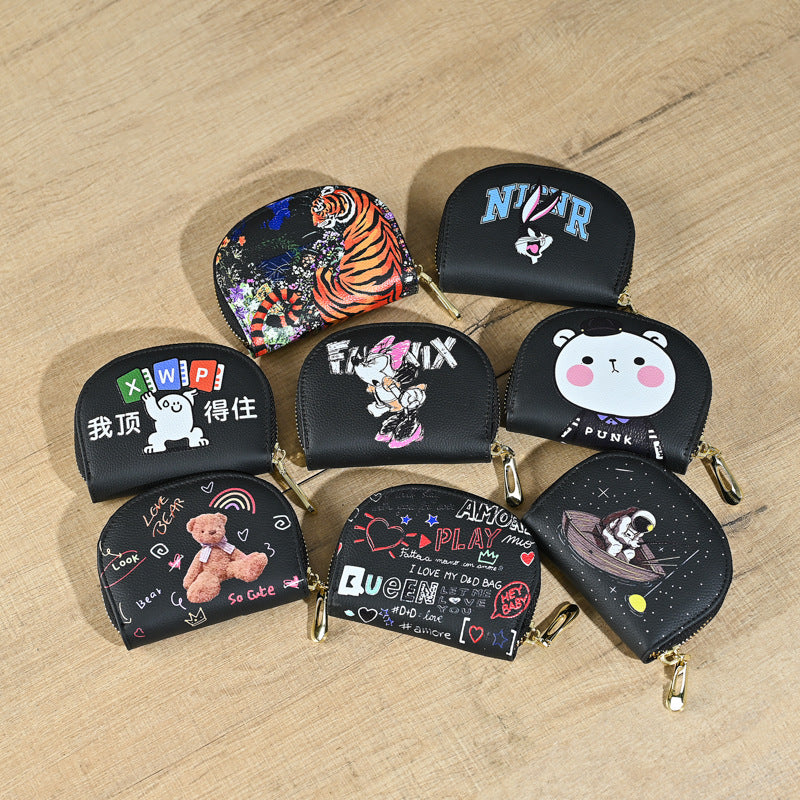 Genuine leather women's card holder, first layer cowhide embossed coin purse, vintage style, new color printing